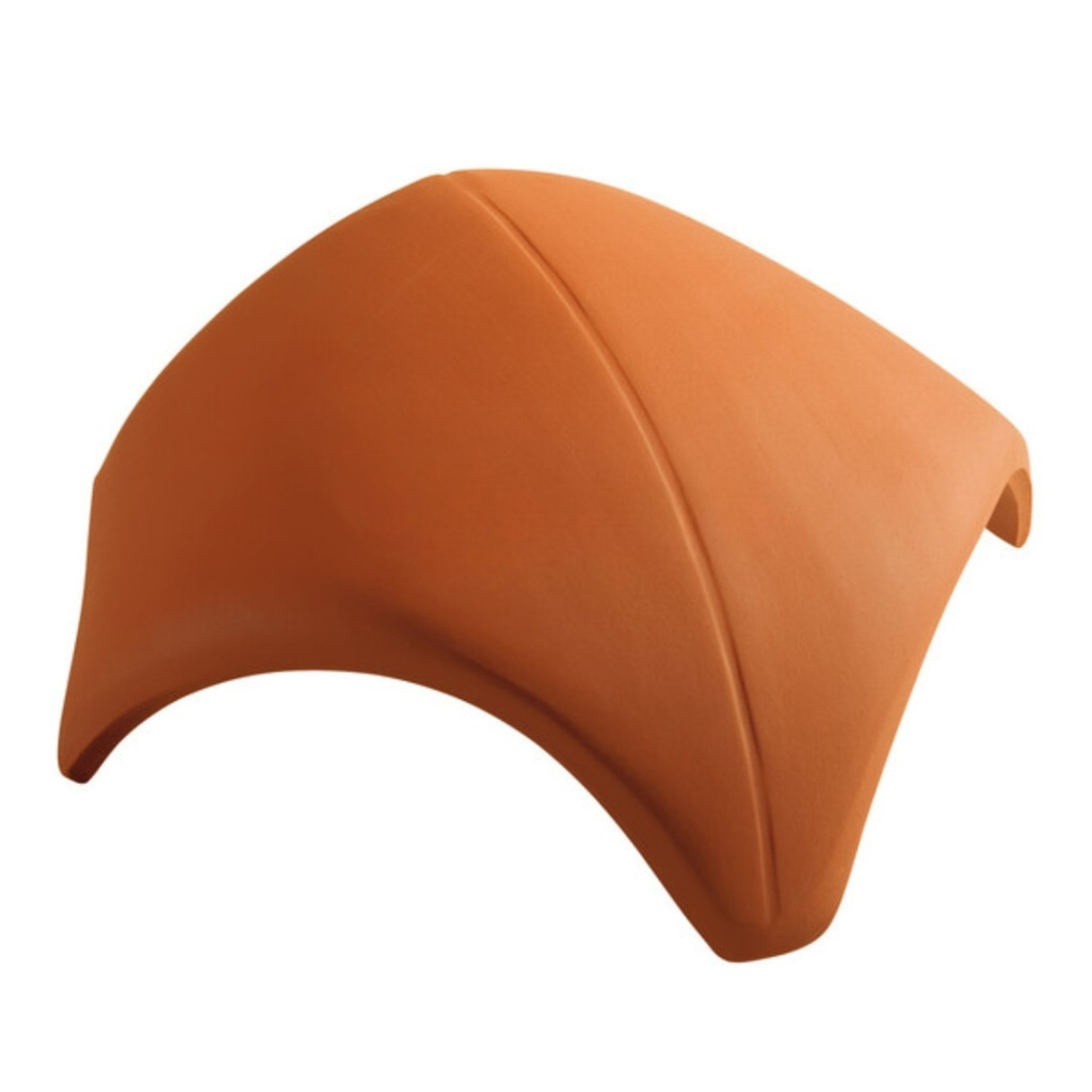 A CREATON PF/PR elosztókúp 3-as borvörös engóbozott kifejezetten arra szolgál, hogy a gerincek találkozásánál szakszerű, stabil és esztétikus megoldást biztosítson, miközben tökéletesen illeszkedik a CREATON tetőrendszerekhez.