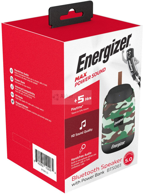 Az Energizer BTS-061 Bluetooth hangszóró új szintre emeli a hordozható zenehallgatást és kommunikációt. A 6 wattos teljesítményű, masszív, terepszínű kialakítású eszköz tökéletes társ minden környezetben, legyen szó egy szabadtéri kalandról, egy irodai munkanapról vagy egy pihentető estéről otthon.