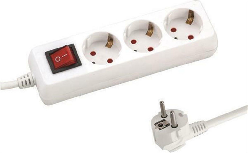 EUROLAMP földelt elosztó 3-as, kapcsolóval 1,5m - fehér