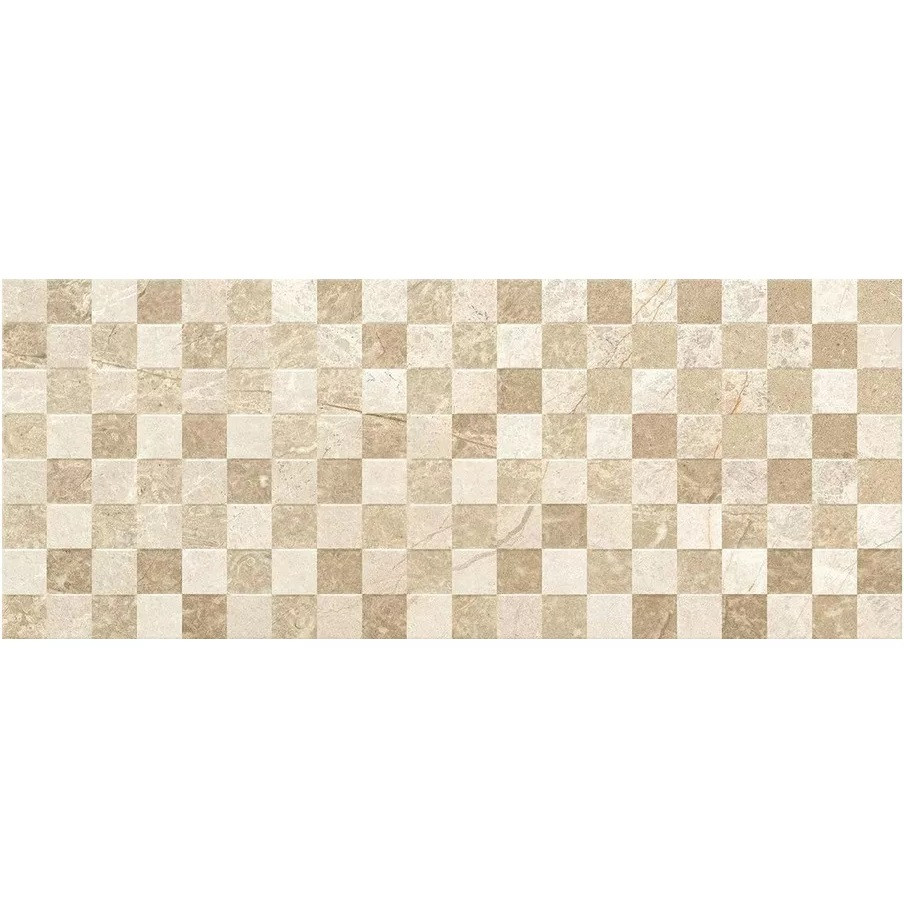 A mozaikos hatású kialakítás izgalmas vizuális textúrát nyújt anélkül, hogy túlzóvá válna. A négyzetes minták finoman váltakozó árnyalatai – a bézs világossága és a barna mélysége – kiegyensúlyozott összhatást biztosítanak, amely jól illeszkedik világos és sötétebb bútorokhoz, fa, üveg vagy akár fém felületekhez is. A természetes hatás nem csupán esztétikai élményt jelent, hanem a térrel való kapcsolat mélyítését is szolgálja – ezáltal válik ez a burkolat ideálissá fürdőszobákba, konyhákba, vagy akár egy karakteresebb belső fal dekorálására is.