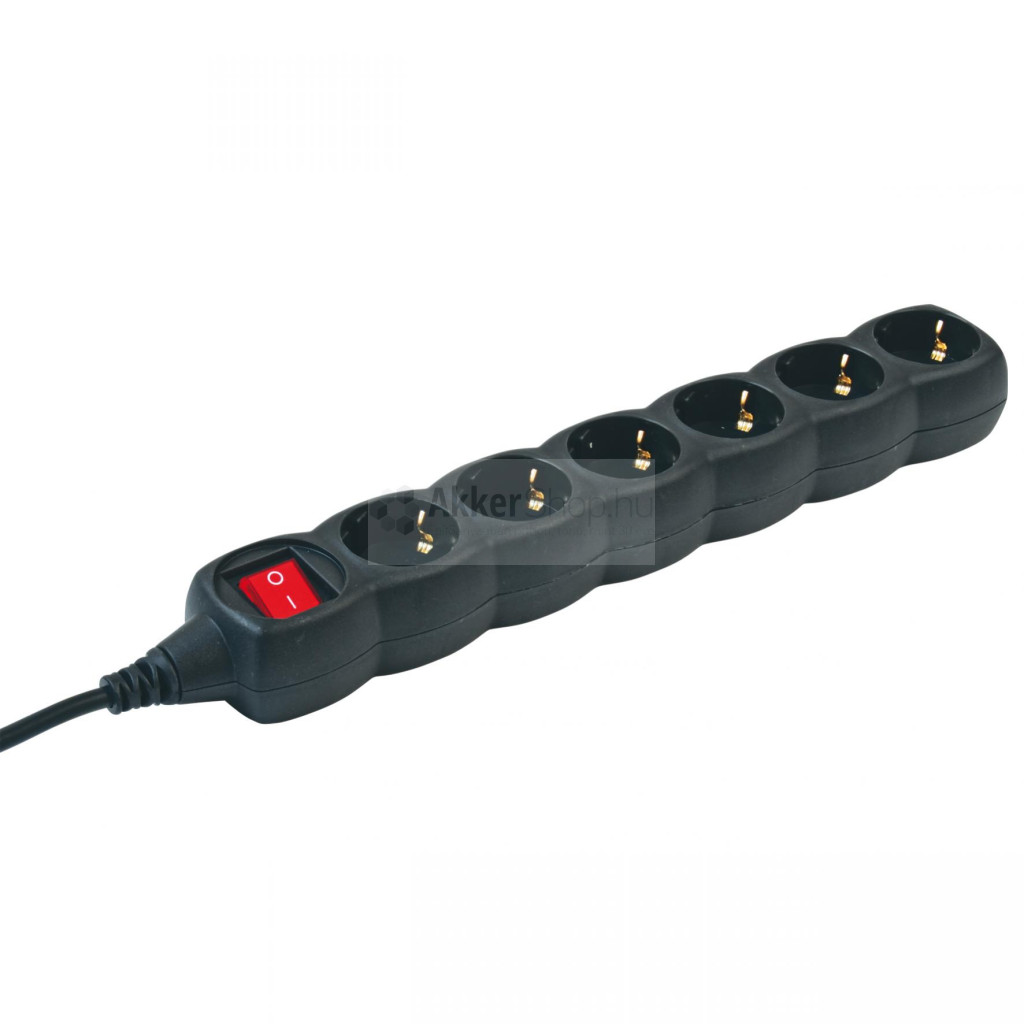 HOME Hálózati elosztó, 6 aljzat, 3m, fekete NV 6-3/BK/1,5