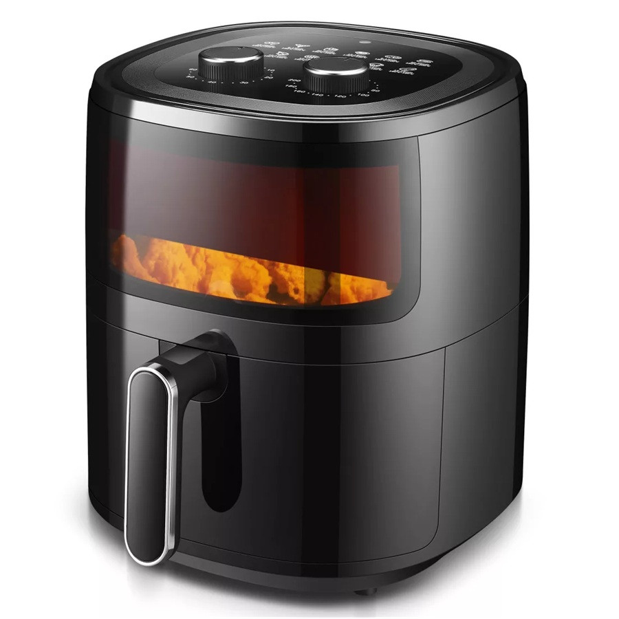Az 1500 W teljesítményű air fryer erőteljes forrólevegős technológiával dolgozik, amely egyenletes hőeloszlást biztosít az étel körül, így az kívül ropogós, belül pedig szaftos marad – mindezt minimális vagy akár hozzáadott olaj nélkül. Az állítható, 80–200 °C közötti hőmérséklet lehetővé teszi, hogy a különböző alapanyagokhoz és receptekhez igazítsa a sütést, legyen szó hasábburgonyáról, húsokról, zöldségekről vagy akár péksüteményről. A 0–60 perces időzítő hangjelzéssel segít abban, hogy mindig pontosan elkészüljön az étel, túlsütés nélkül.