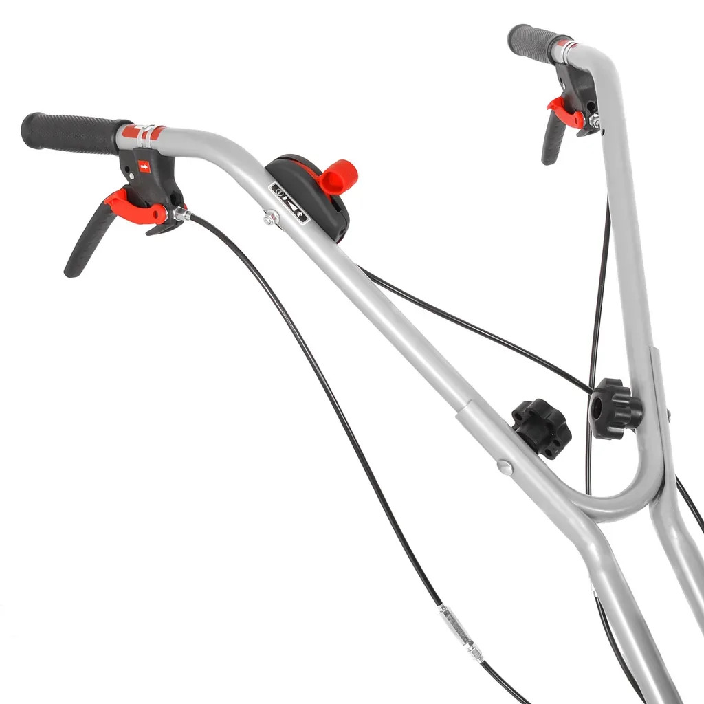 A masszív, robusztus szerkezet hosszú élettartamot biztosít, a minőségi váltómű pedig megbízható erőátvitelt garantál. A kapatagokat erős acél burkolat védi, amely nemcsak a gépet óvja, hanem a kezelőt is megvédi a felcsapódó földtől és apró kövektől. Az ergonomikus fogantyúk kényelmesebb irányítást tesznek lehetővé, így hosszabb munkavégzés során is komfortos marad a használat. A fékcsapnak köszönhetően lejtős terepen is biztonságosan alkalmazható.