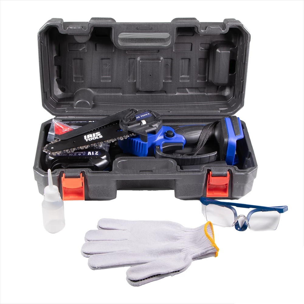 IRIS TOOLS ITCM-100 Akkus olajozós láncfűrész, ágvágó szett (táska+fűrész+2 akku+töltő) 21V
