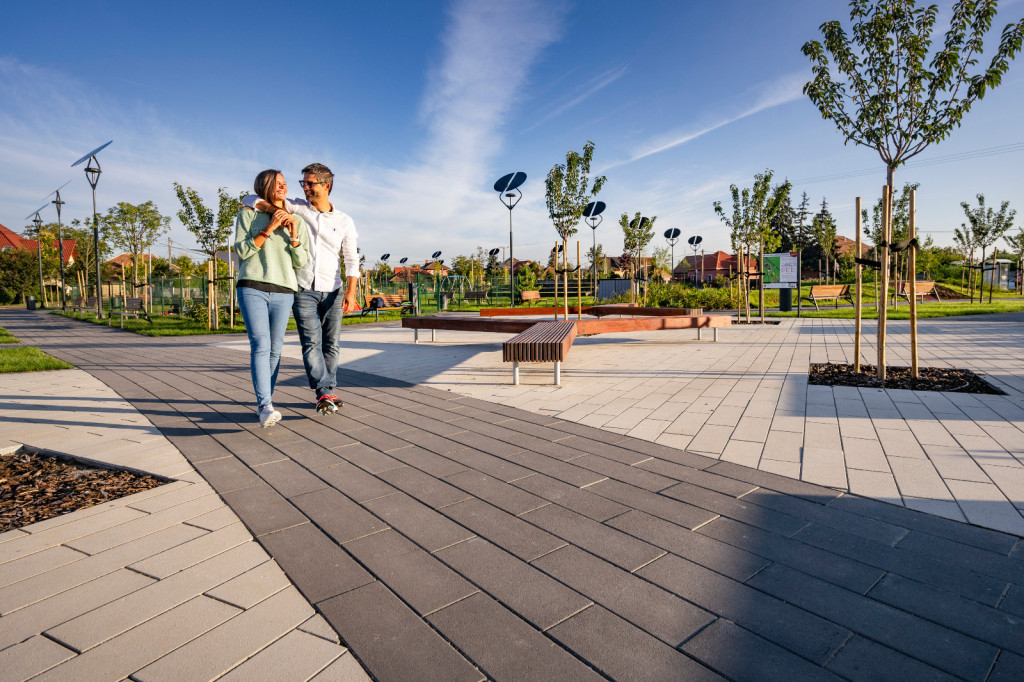 A LEIER FORUM térkő különleges jellemzője, hogy egyszerűen, gyorsan és szinte játékosan rakható le, köszönhetően a rejtett távtartóknak és a precízen kialakított élgeometriának. A burkolat így nem csupán tartós, hanem esztétikailag is rendezett, mivel a kis élletörésű kőszélek letisztult fugaképet eredményeznek. Ez a vizuális harmónia lehetővé teszi, hogy a FORUM térkő szinte bármilyen építészeti stílushoz illeszkedjen, legyen szó minimalista városi környezetről vagy rusztikusabb falusi terek felújításáról.