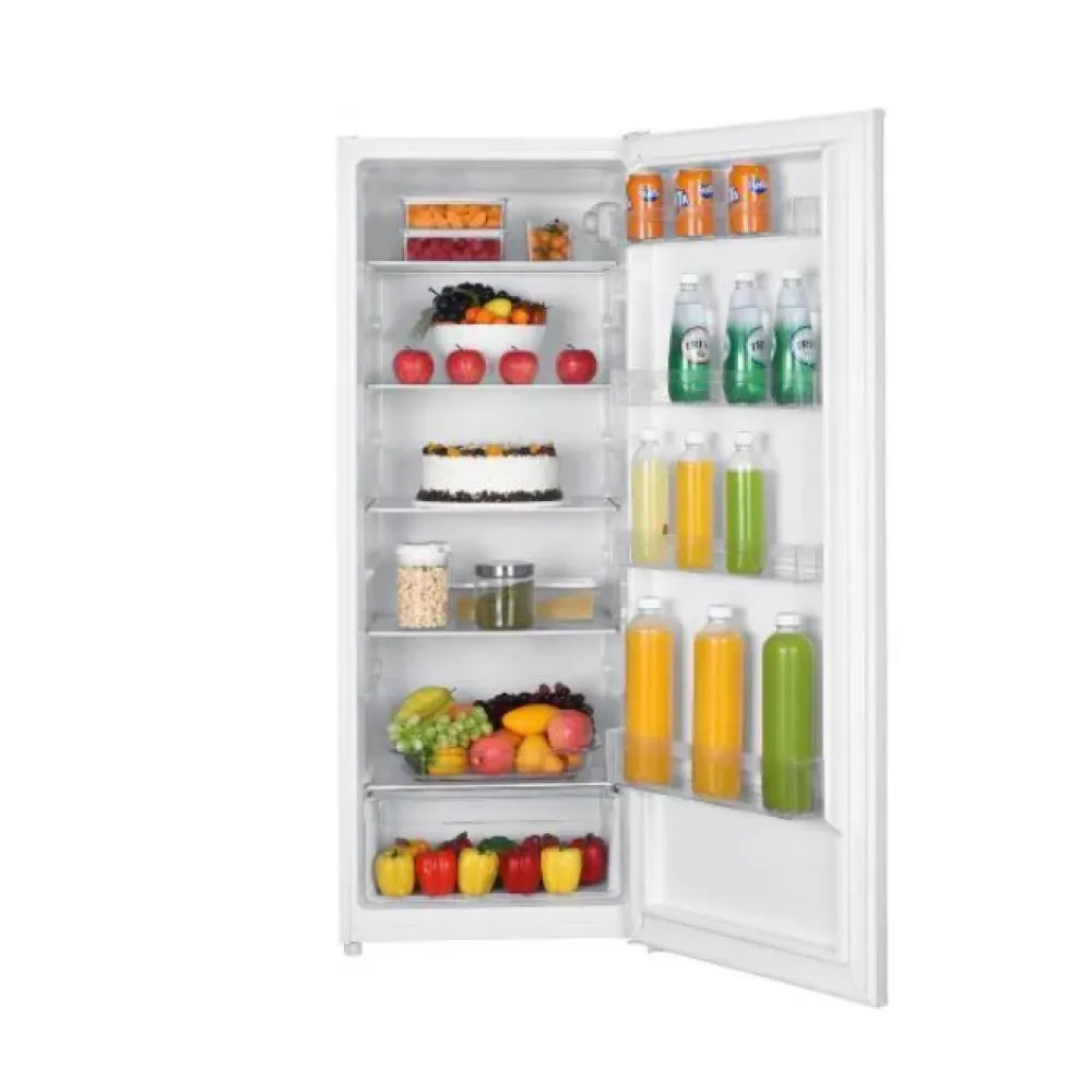 Az MPM-246-CJ-25 hűtőszekrény nem tartalmaz fagyasztórekeszt, így teljes kapacitását a friss élelmiszerek tárolására fordíthatja. Ez különösen előnyös azoknak, akik már rendelkeznek különálló fagyasztóval, vagy egyszerűen nem használnak gyakran mélyhűtött termékeket. A készülék évi 104 kWh energiafogyasztással tartozik az „E” energiaosztályba, amely kedvező egyensúlyt jelent a teljesítmény és takarékosság között. Ráadásul az MPM-182-ZS-14 típusú fagyasztóval párosítható, így igény szerint oldalsó elrendezésben akár egy nagyméretű, kombinált hűtő-fagyasztó rendszert is kialakíthat otthonában.