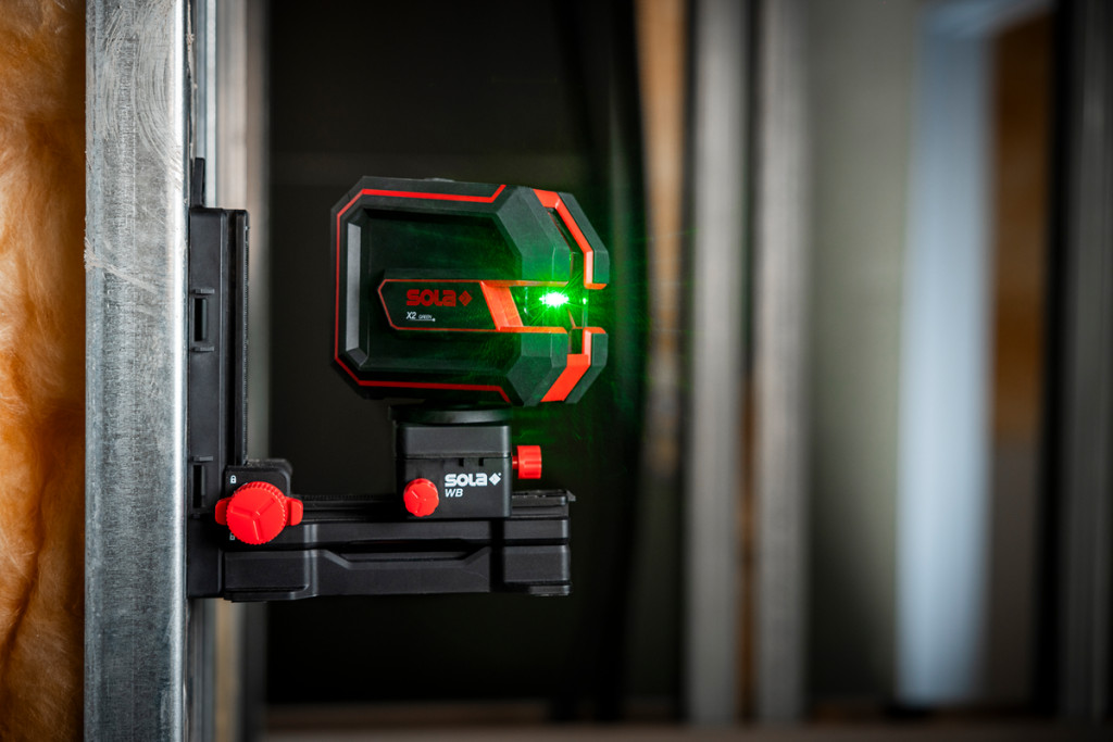 SOLA-Metál X2 Green Professional keresztvonal lézer szett (lézer, elem, fali tartó, táska)