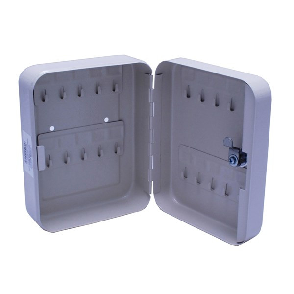 A kulcstartó szekrény masszív fém szerkezete garantálja a hosszú élettartamot és az ellenálló képességet a mindennapi használat során. Kompakt méreteinek köszönhetően (20 x 16 x 8 cm) kis helyen is elfér, miközben elegendő kapacitást biztosít 20 kulcs biztonságos tárolására. A szürke színű, letisztult dizájn harmonikusan illeszkedik bármilyen környezetbe, legyen az modern vagy hagyományos stílusú.