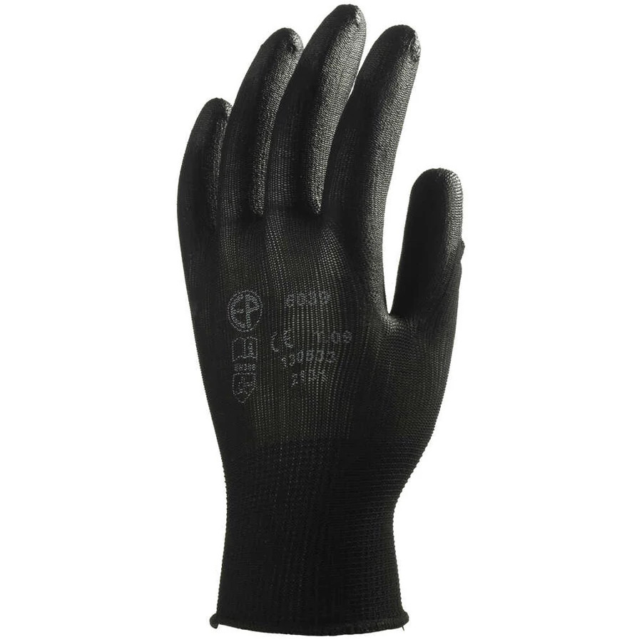 EP Precíziós poliészter kesztyű, PU mártott tenyérrel, fekete, méret: 10